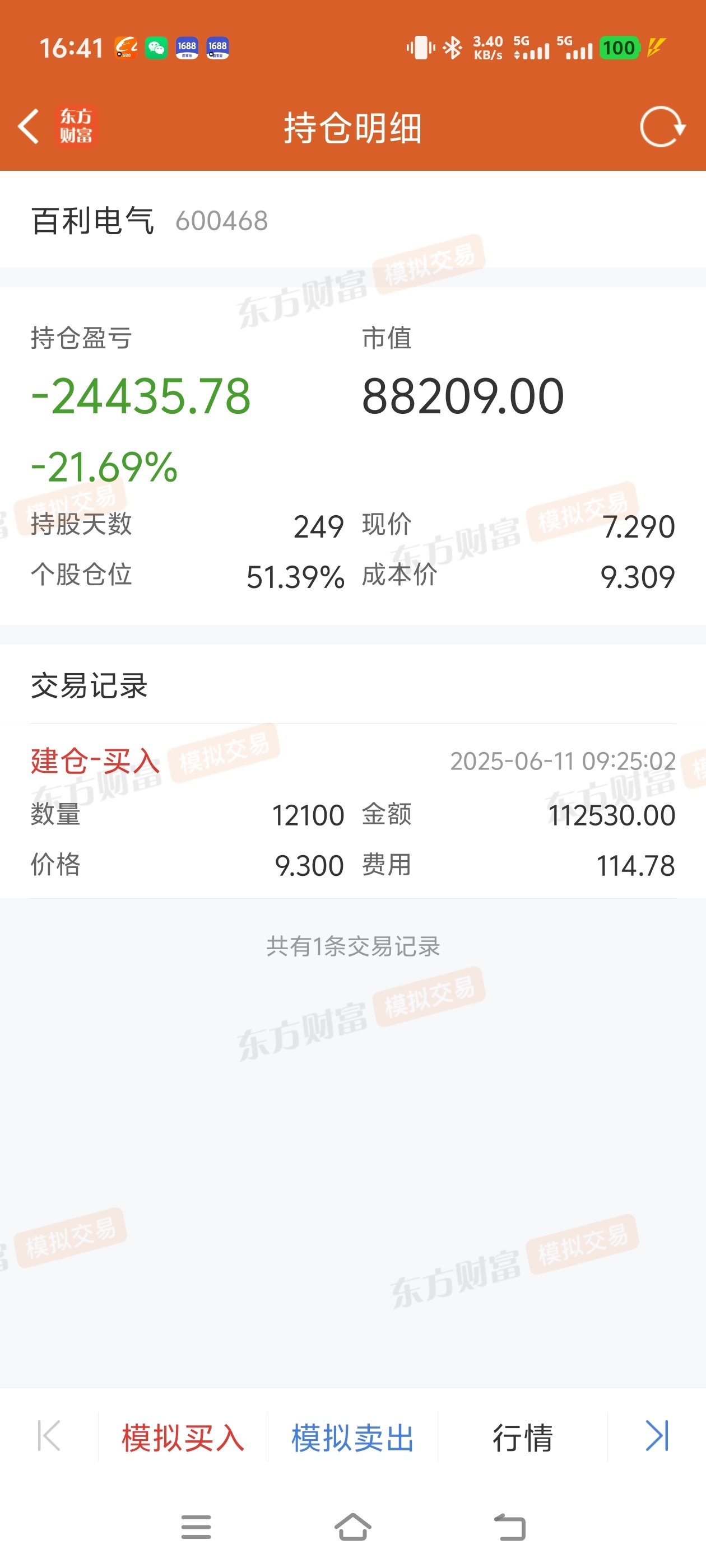 $百利电气(SH600468)$ 我都笑了,今天看了一下这个模拟盘,放了半年了,都还没回本。天天牛市行情。散户能做的又有什么呢?