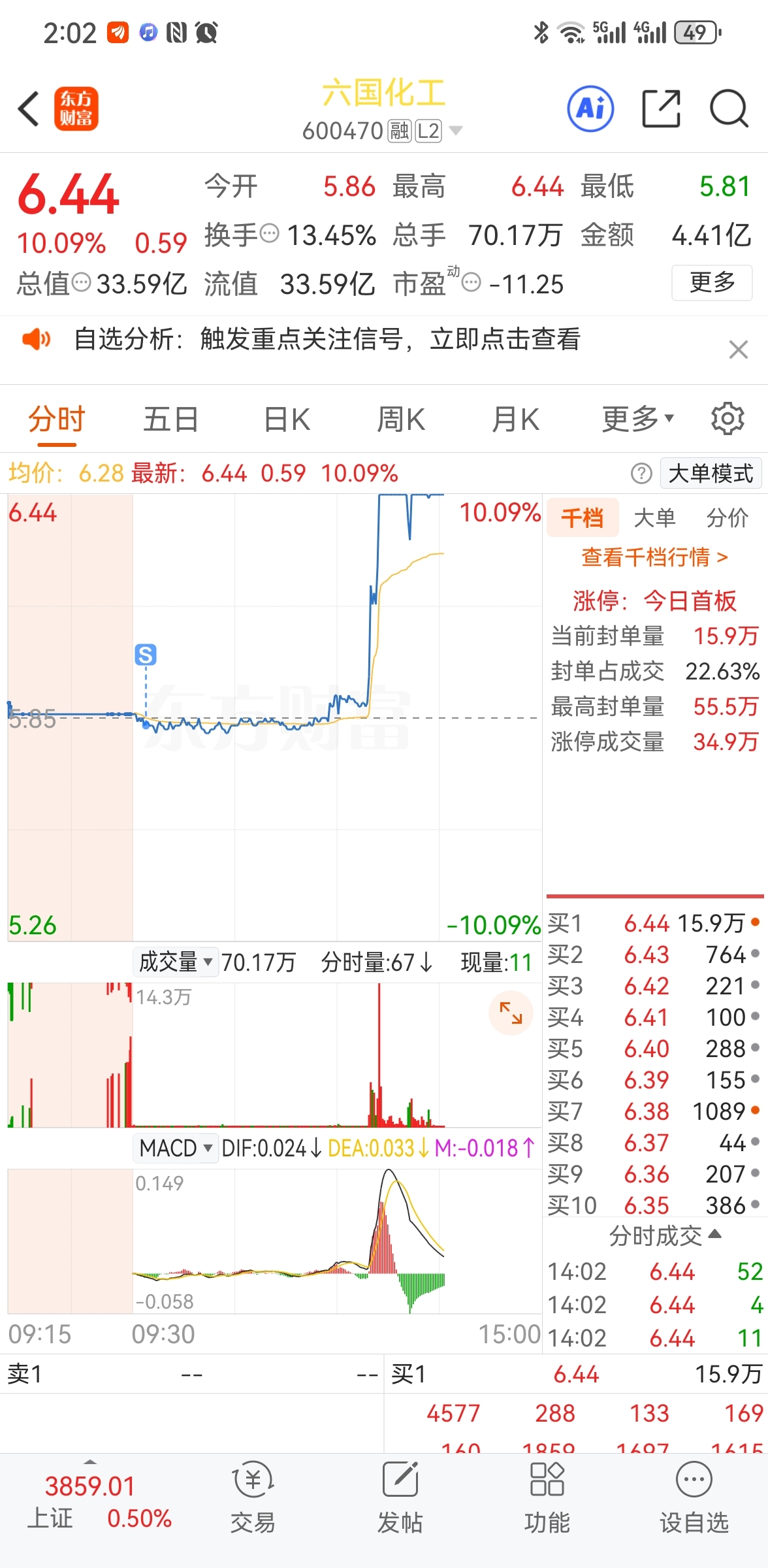 $六国化工(SH600470)$ 有的就拿好吧!卖飞了