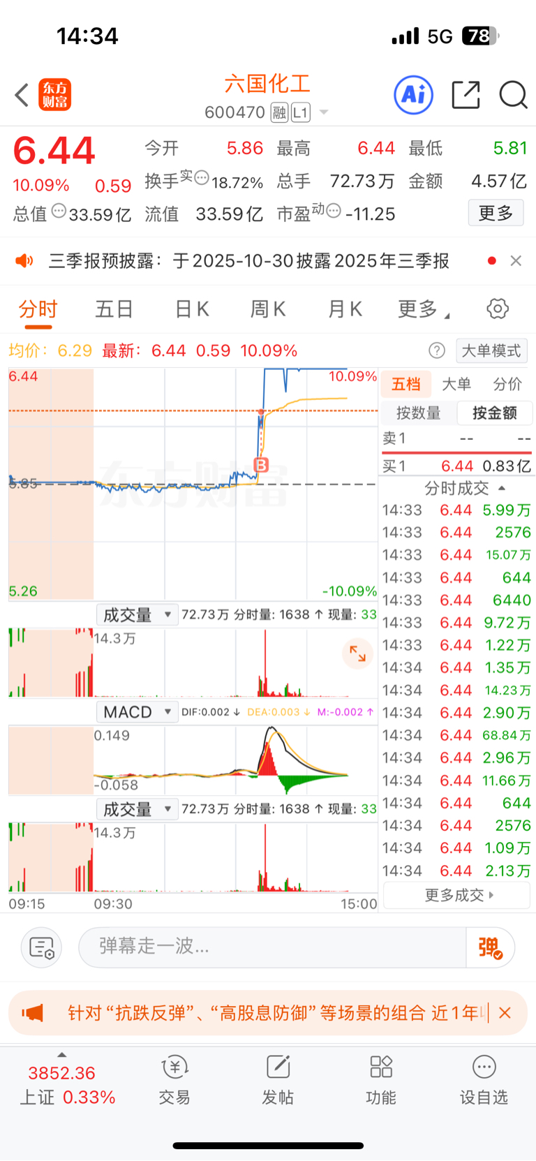 $六国化工(SH600470)$  比乎比乎吧