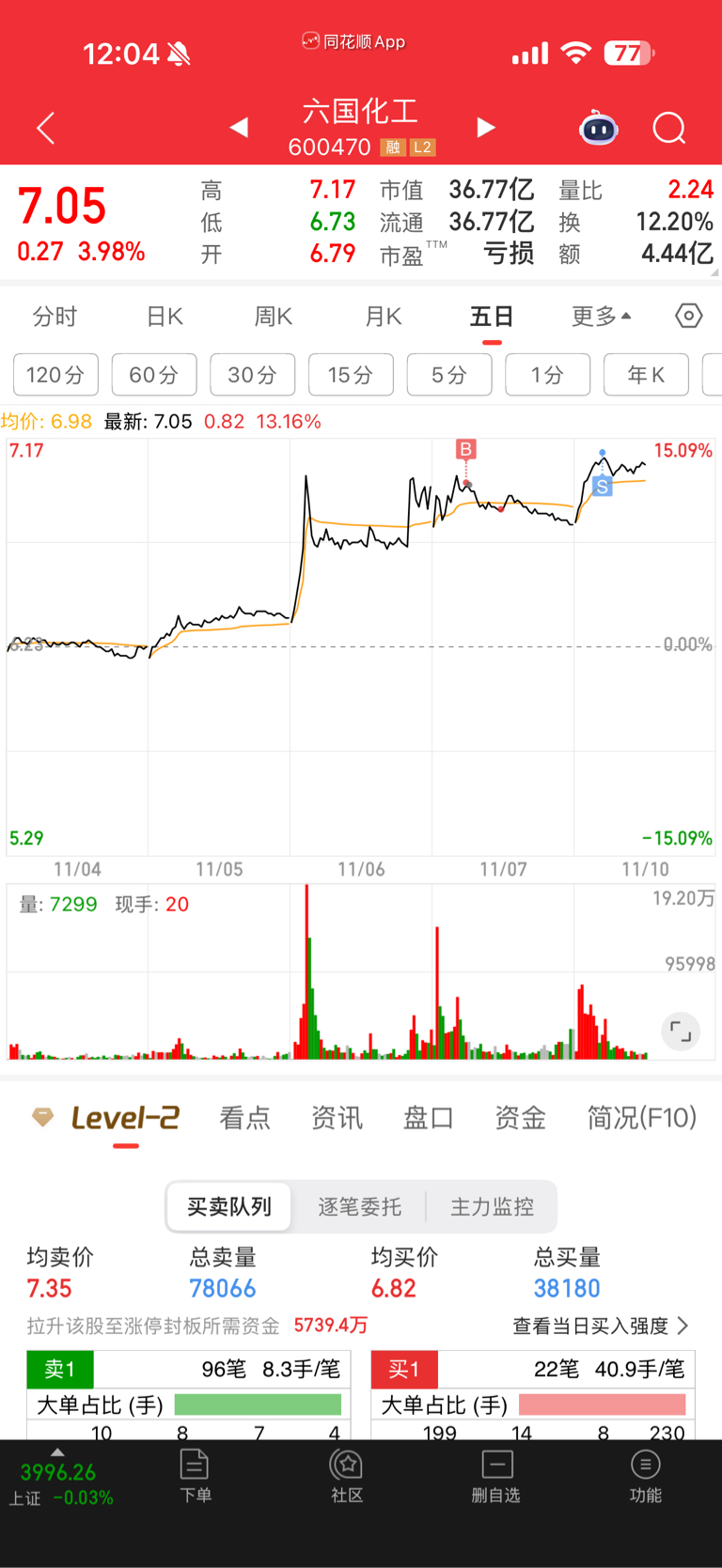 $六国化工(SH600470)$ 周五追高买入,今天总算活着出来了留下的发财