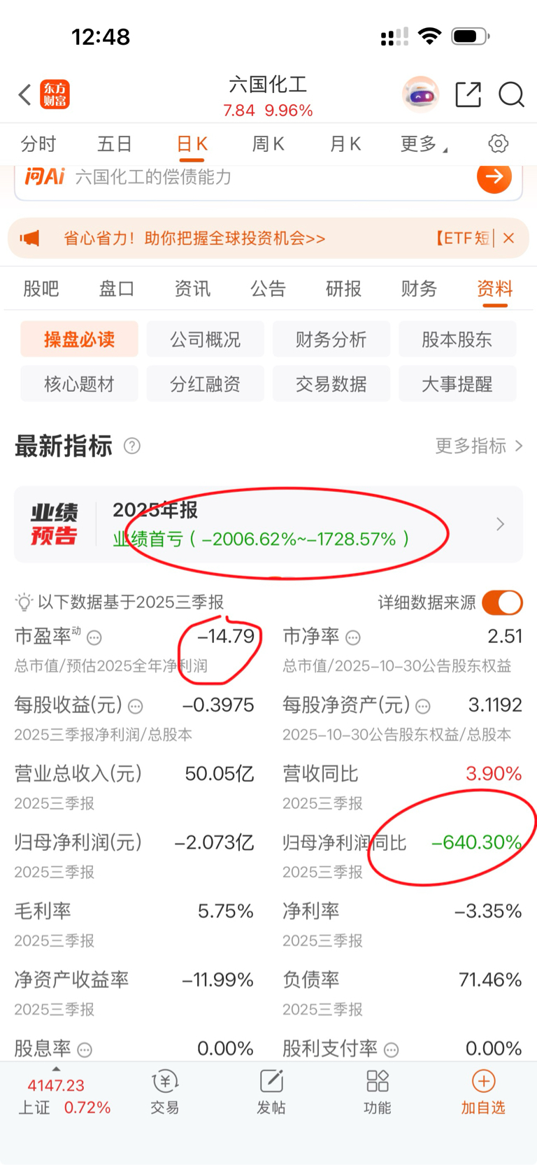 $六国化工(SH600470)$ 炒股一定要选亏损股!