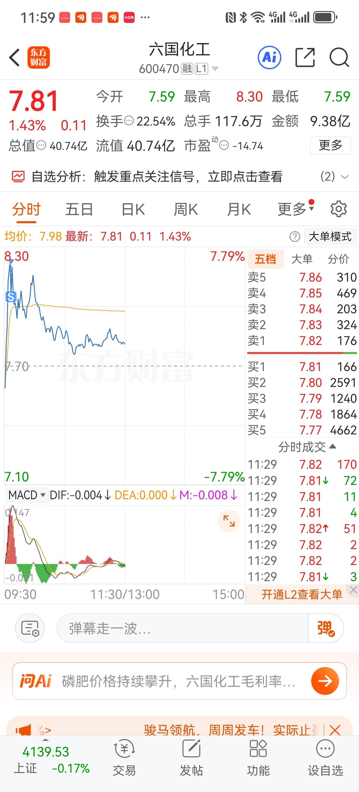 $六国化工(SH600470)$ 感谢,祝留下的发财