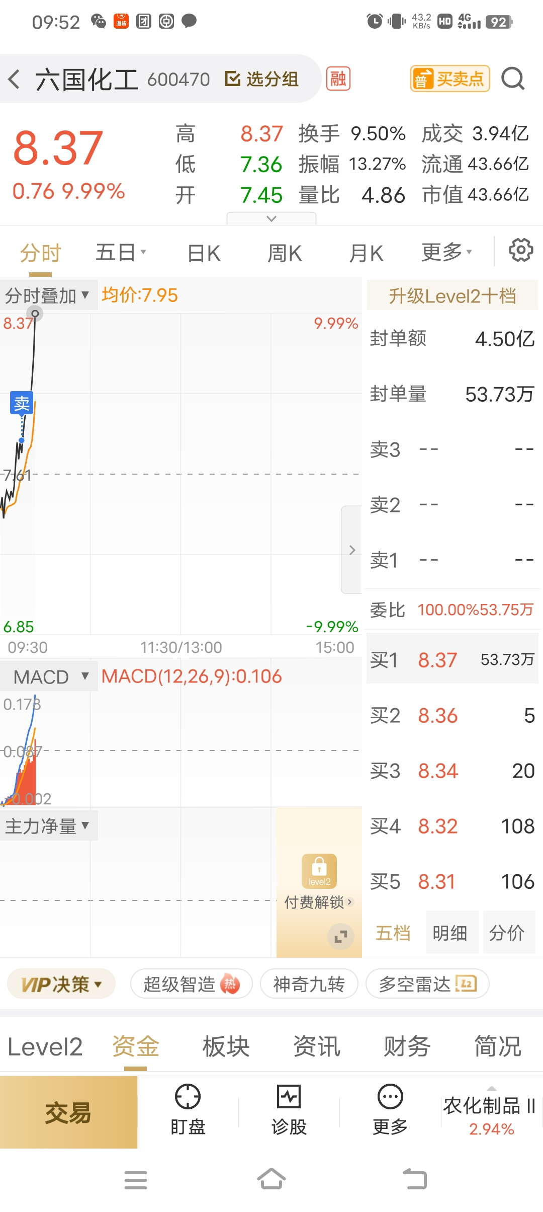 $六国化工(SH600470)$ 来不及撤单,有毒