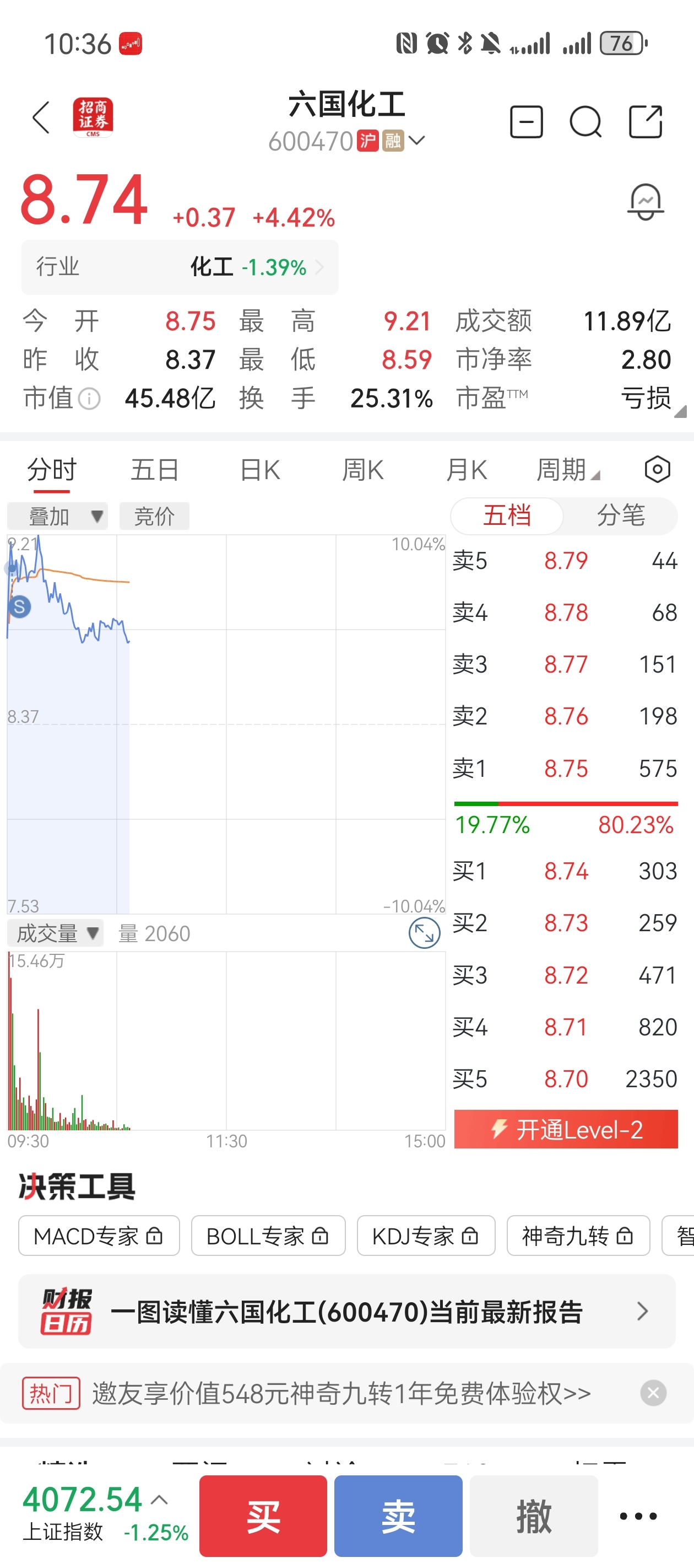 $六国化工(SH600470)$ 早盘封不住的就不要有太多幻想,尾盘看情况再考虑接回