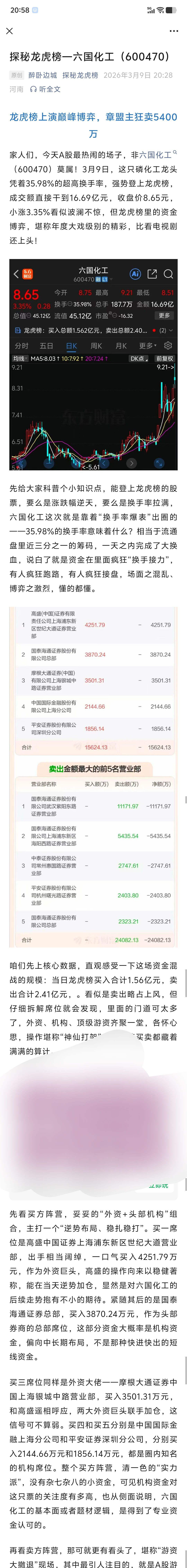 $六国化工(SH600470)$