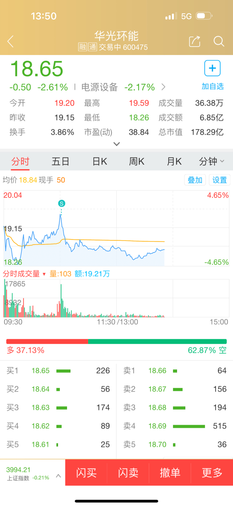 $华光环能(SH600475)$ 冲高出了昨天18.35加仓的。