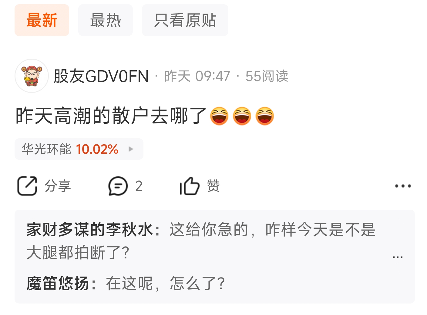 温馨提示: 1.根据《证券法》规定,禁止编造、传播虚假信息或者误导性信息,扰乱证券市场;2.用户在本社区发表的所有资料、言论等仅代表个人观点,与本网站立场无关,不对您构成任何投资建议。用户应基于自己的独立判断,自行决定证券投资并承担相应风险。《东方财富社区管理规定》