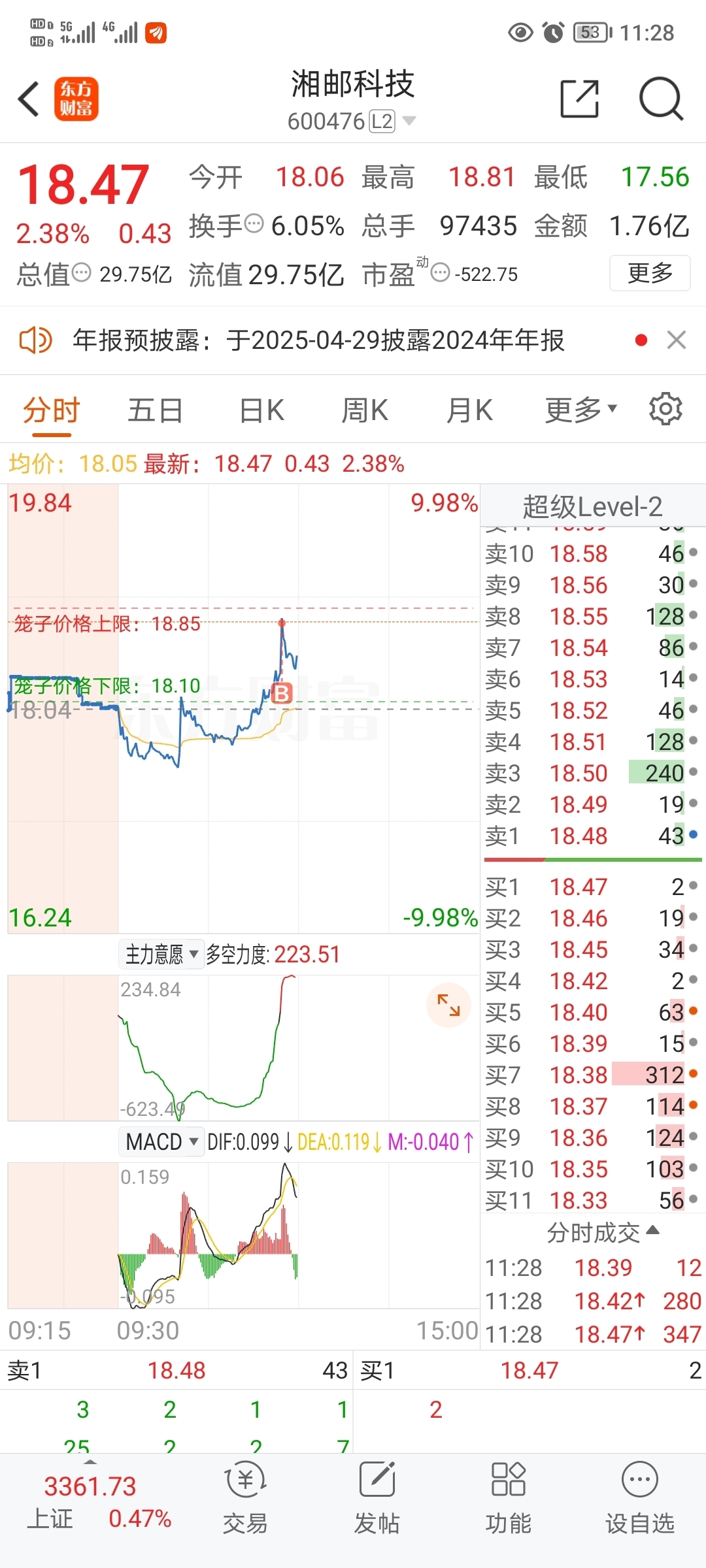 $湘邮科技(SH600476)$ 成功把我挂在最高点