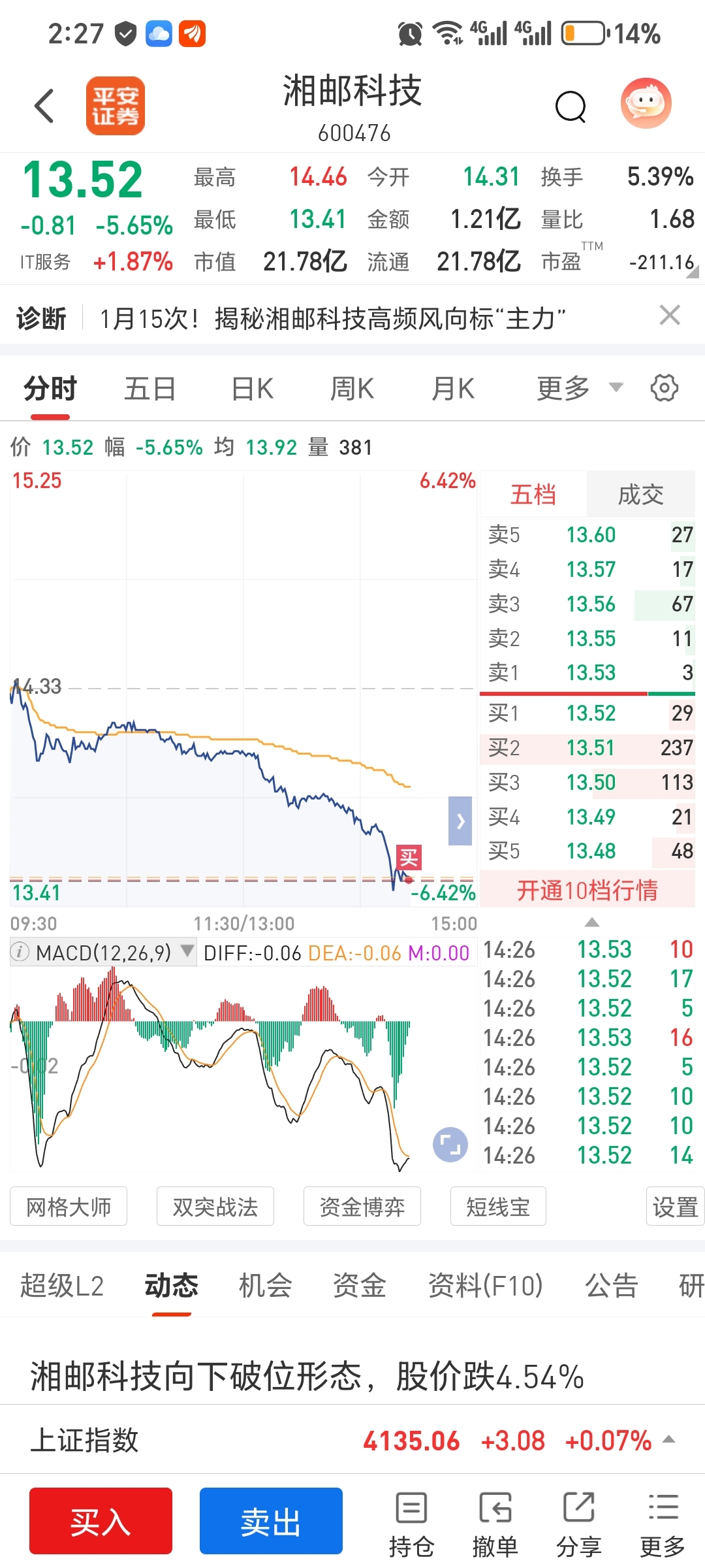 $湘邮科技(SH600476)$ 我来陪你们 要套一起套