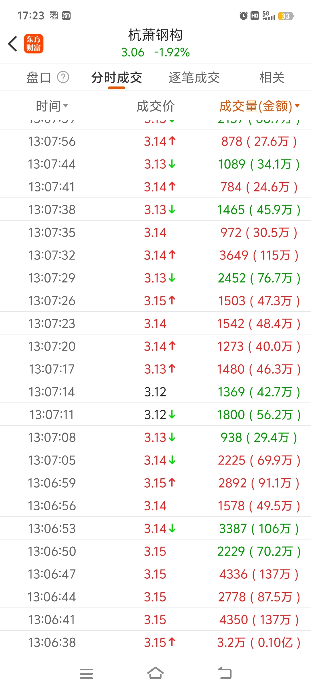 $杭萧钢构(SH600477)$ 3.15回落卖盘也没多少,就是压着不起来