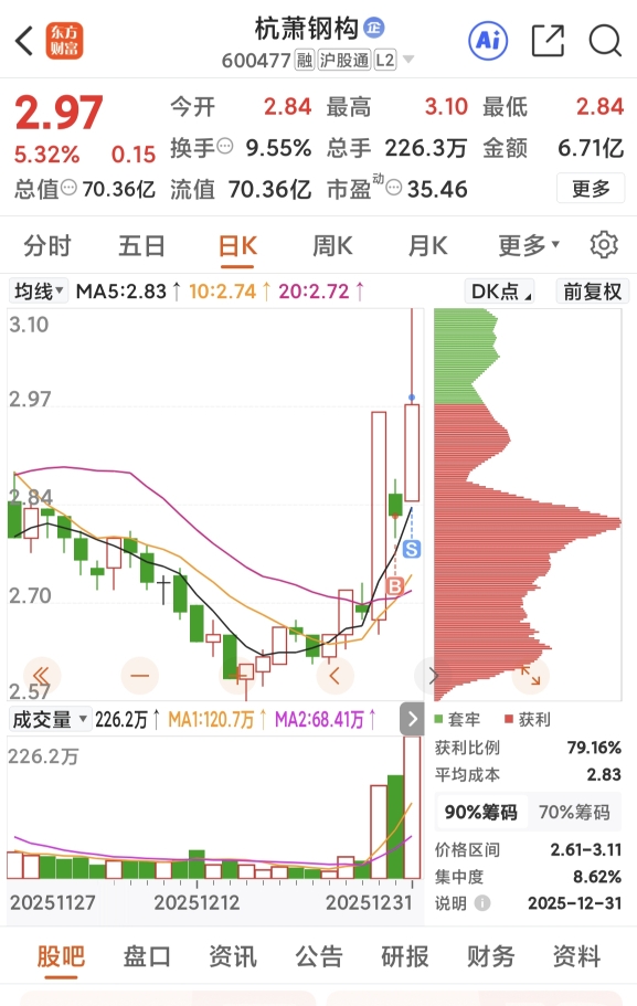 $杭萧钢构(SH600477)$ 反包。