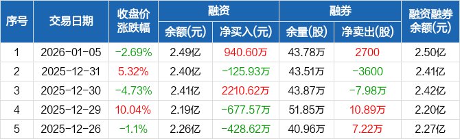 杭萧钢构:融资净买入940.6万元,融资余额2.49亿元(01-05)