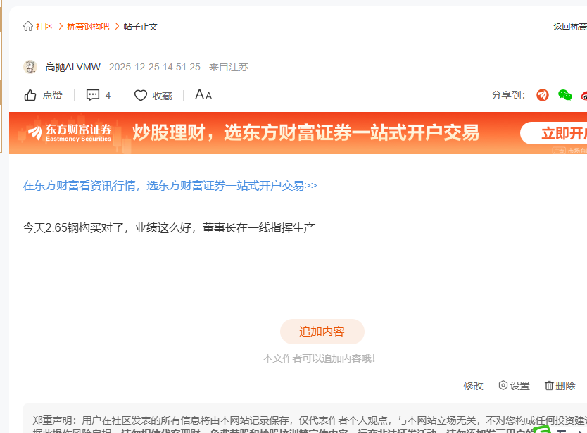 温馨提示: 1.根据《证券法》规定,禁止编造、传播虚假信息或者误导性信息,扰乱证券市场;2.用户在本社区发表的所有资料、言论等仅代表个人观点,与本网站立场无关,不对您构成任何投资建议。用户应基于自己的独立判断,自行决定证券投资并承担相应风险。《东方财富社区管理规定》