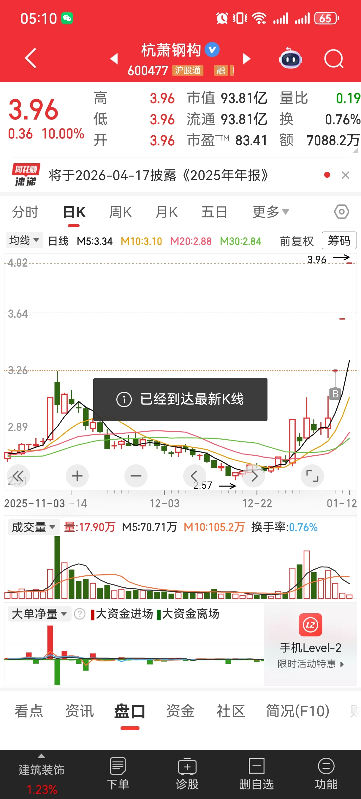 $杭萧钢构(SH600477)$ 很好排啊,可惜买的少