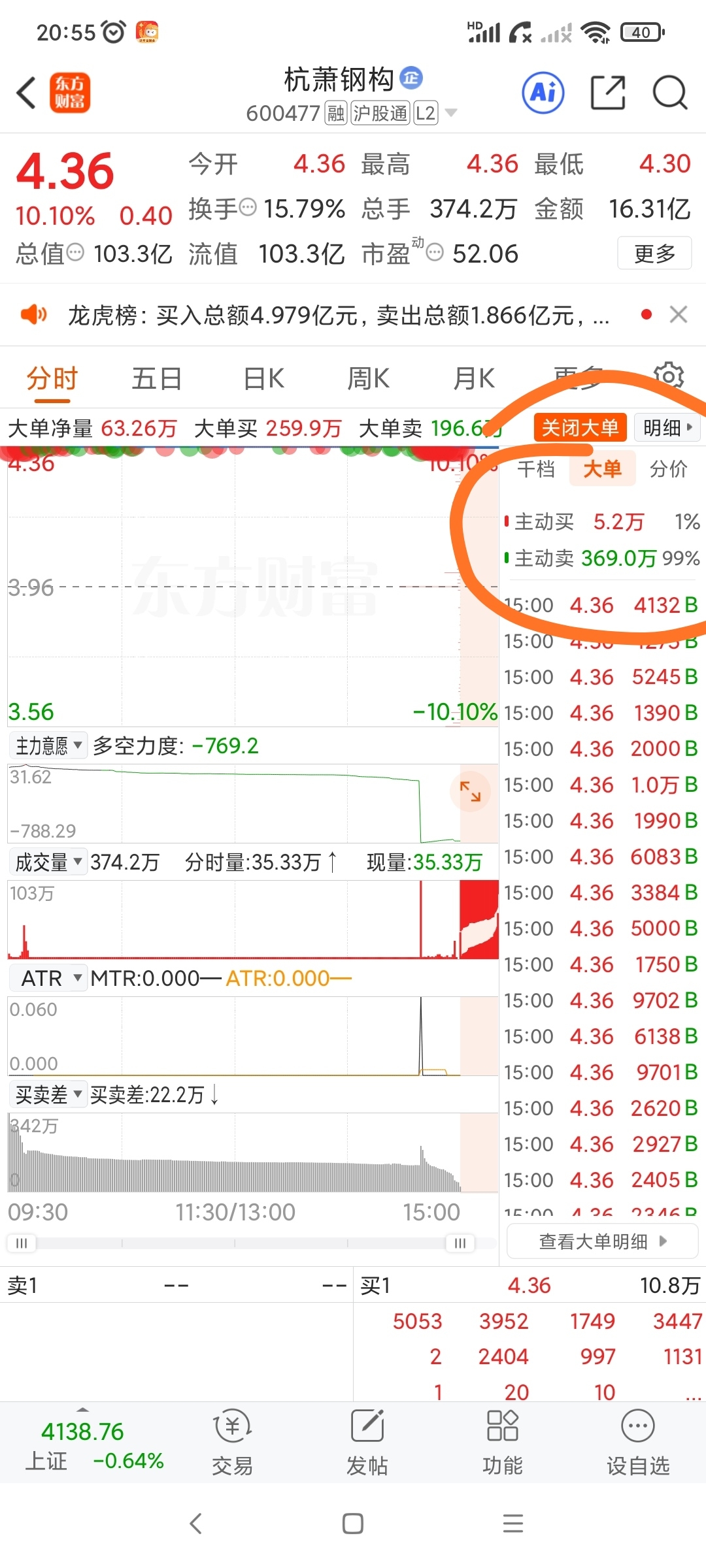 $杭萧钢构(SH600477)$ 尾盘成交的家人们懵圈了