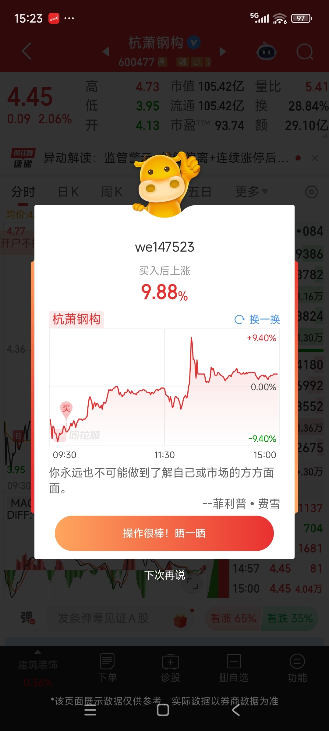 $杭萧钢构(SH600477)$ 本来是想跟友友们商量一下,我是大学生,明天让我先跑,结果看到又在教训国晟科技,估计明天资金全盯着这里了,明天我不走了,你以要走我欢送你们。