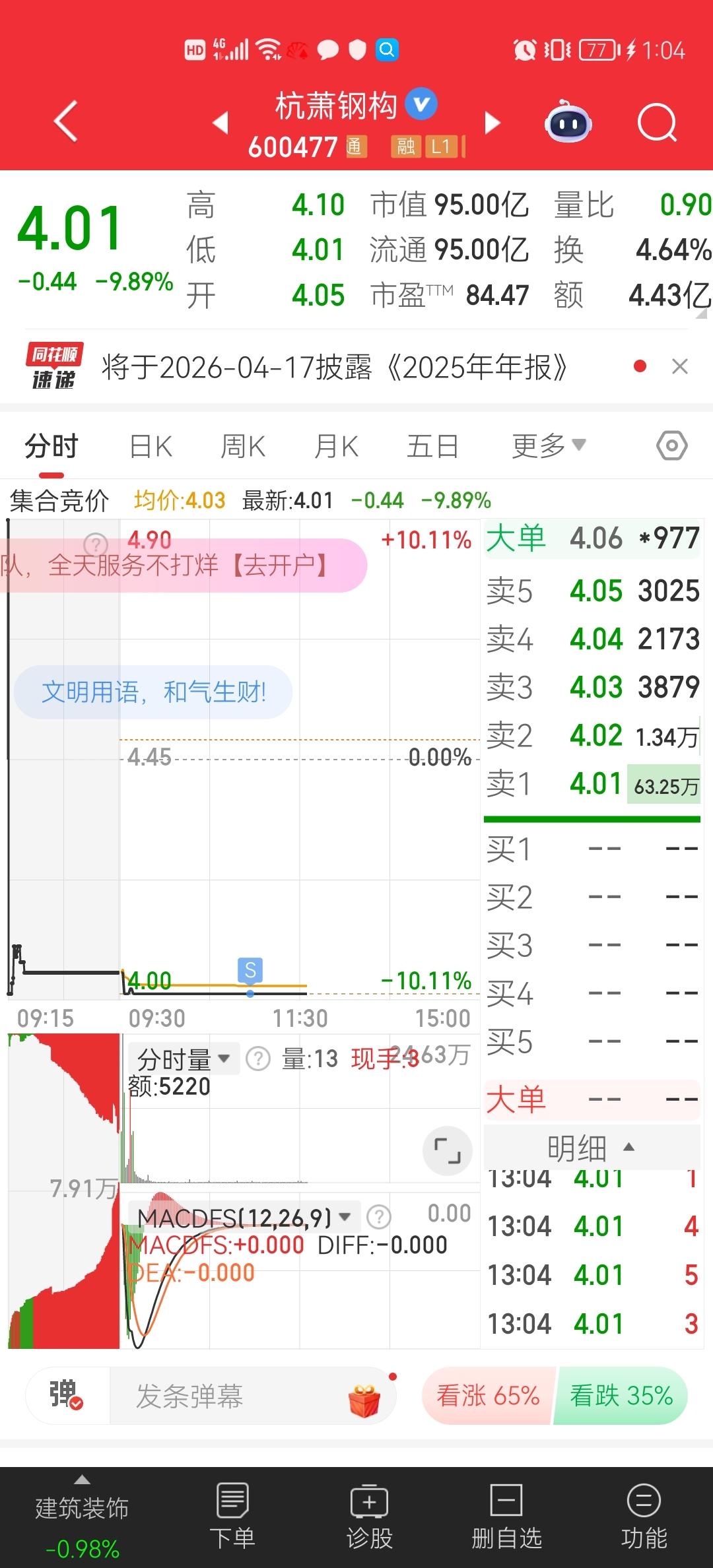 $杭萧钢构(SH600477)$ 太狠了,断了你一个手臂,你还得说声谢谢