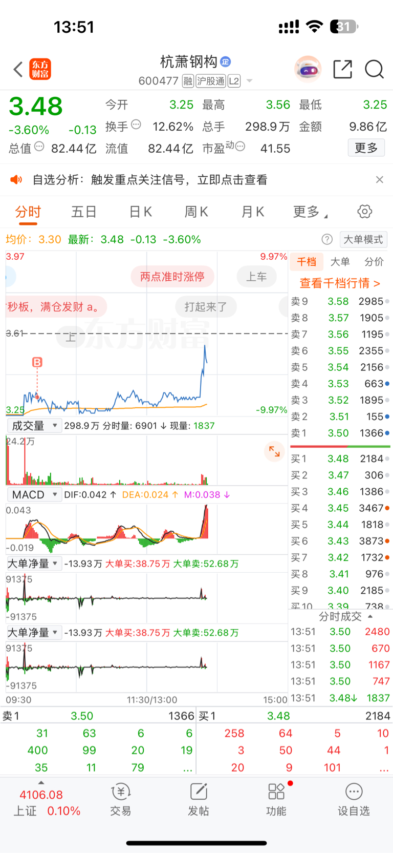 $杭萧钢构(SH600477)$ 买二千三的股票拼命拉,买12万的股票一动不动,可笑呀