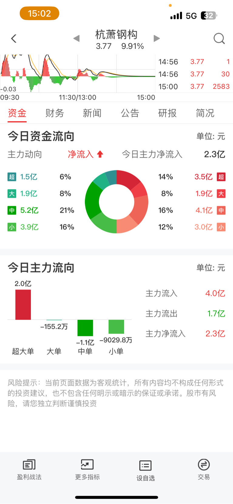 $杭萧钢构(SH600477)$ 超大单。资金流入2.3个亿,暗盘都进来几千万
