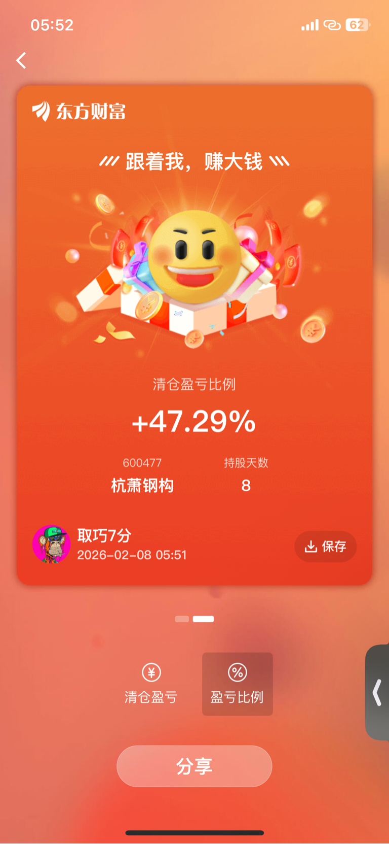 $杭萧钢构(SH600477)$ 满仓进入今日涨停,爷发家的第一支票
