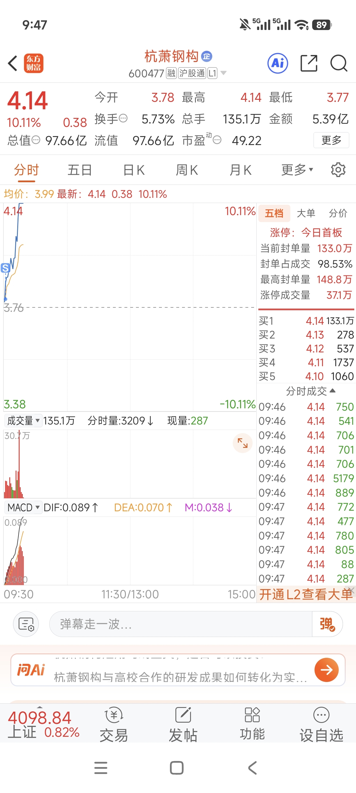 $杭萧钢构(SH600477)$ 开盘就卖了了,我不是人