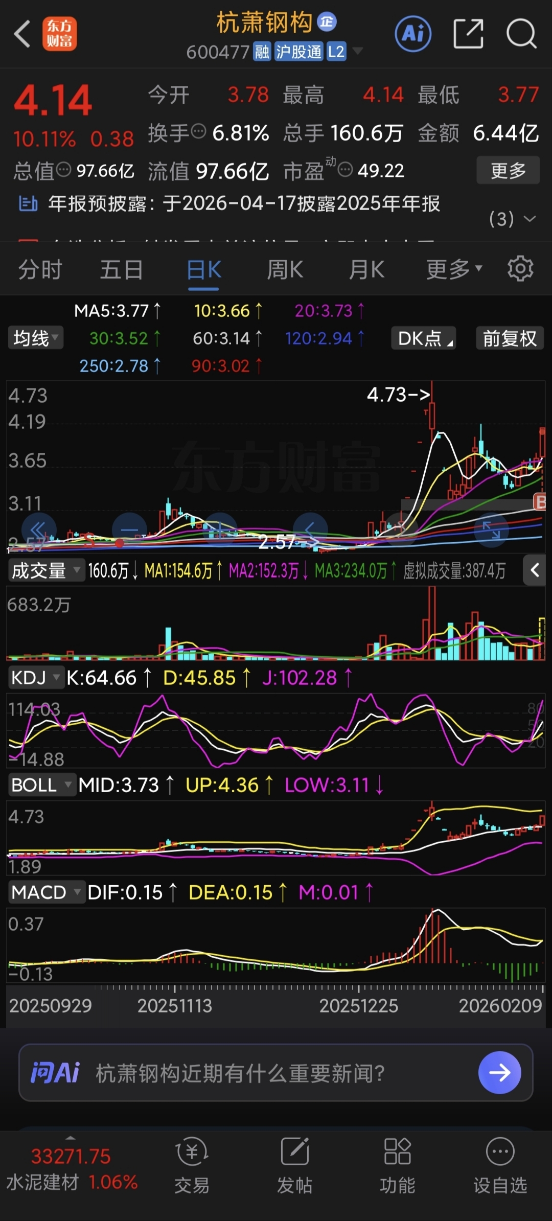 $杭萧钢构(SH600477)$ 盯了你好多天了,就等你启动那一刻确定性才买的,潜在的太空光伏,商业航天好票,加油把,
