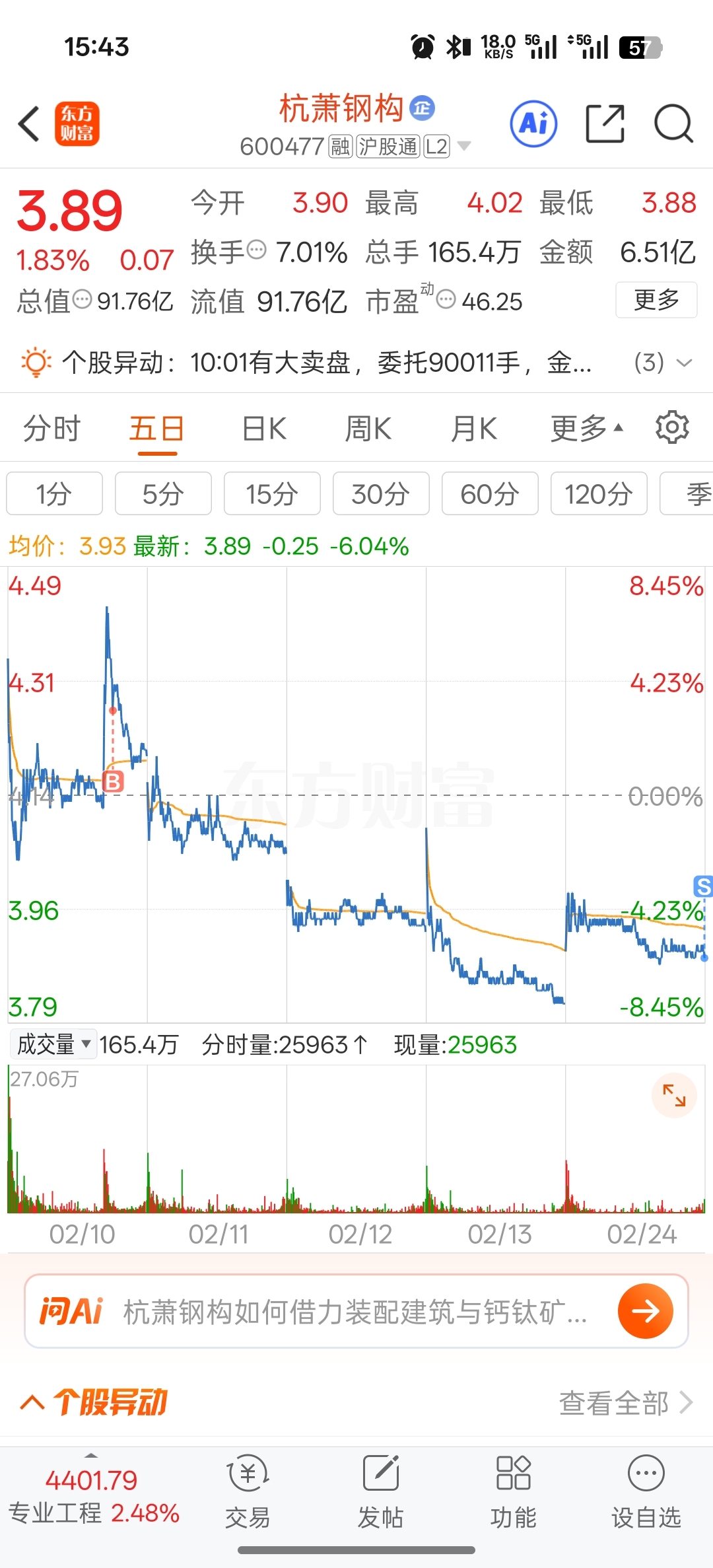 $杭萧钢构(SH600477)$ 够狠的,年前来一波杀猪,年后来一波小涨,割了很有意义,亏了四毛多,真狠太狠了