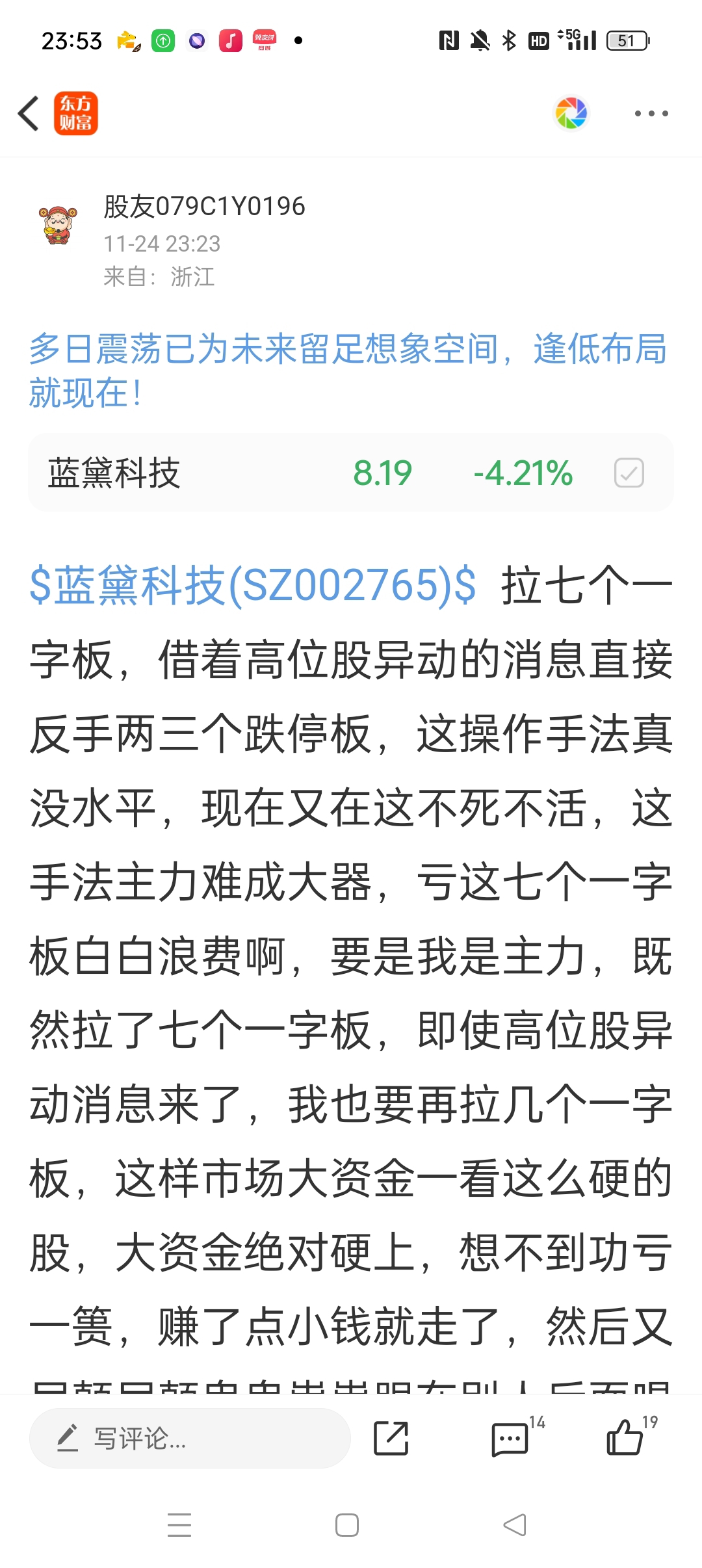 郑重声明:用户在财富号/股吧/博客等社区发表的所有信息(包括但不限于文字、视频、音频、数据及图表)仅代表个人观点,与本网站立场无关,不对您构成任何投资建议,据此操作风险自担。请勿相信代客理财、免费荐股和炒股培训等宣传内容,远离非法证券活动。请勿添加发言用户的手机号码、公众号、微博、微信及QQ等信息,谨防上当受骗!