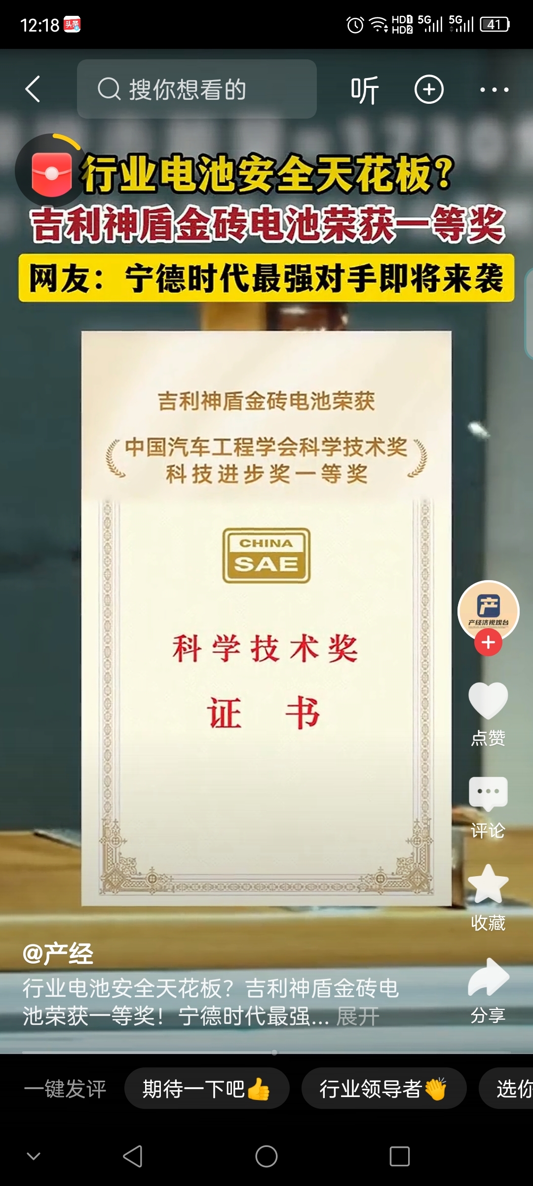 吉利神盾金砖电池荣获科技进步一等奖,有没用到科力远的材料啊