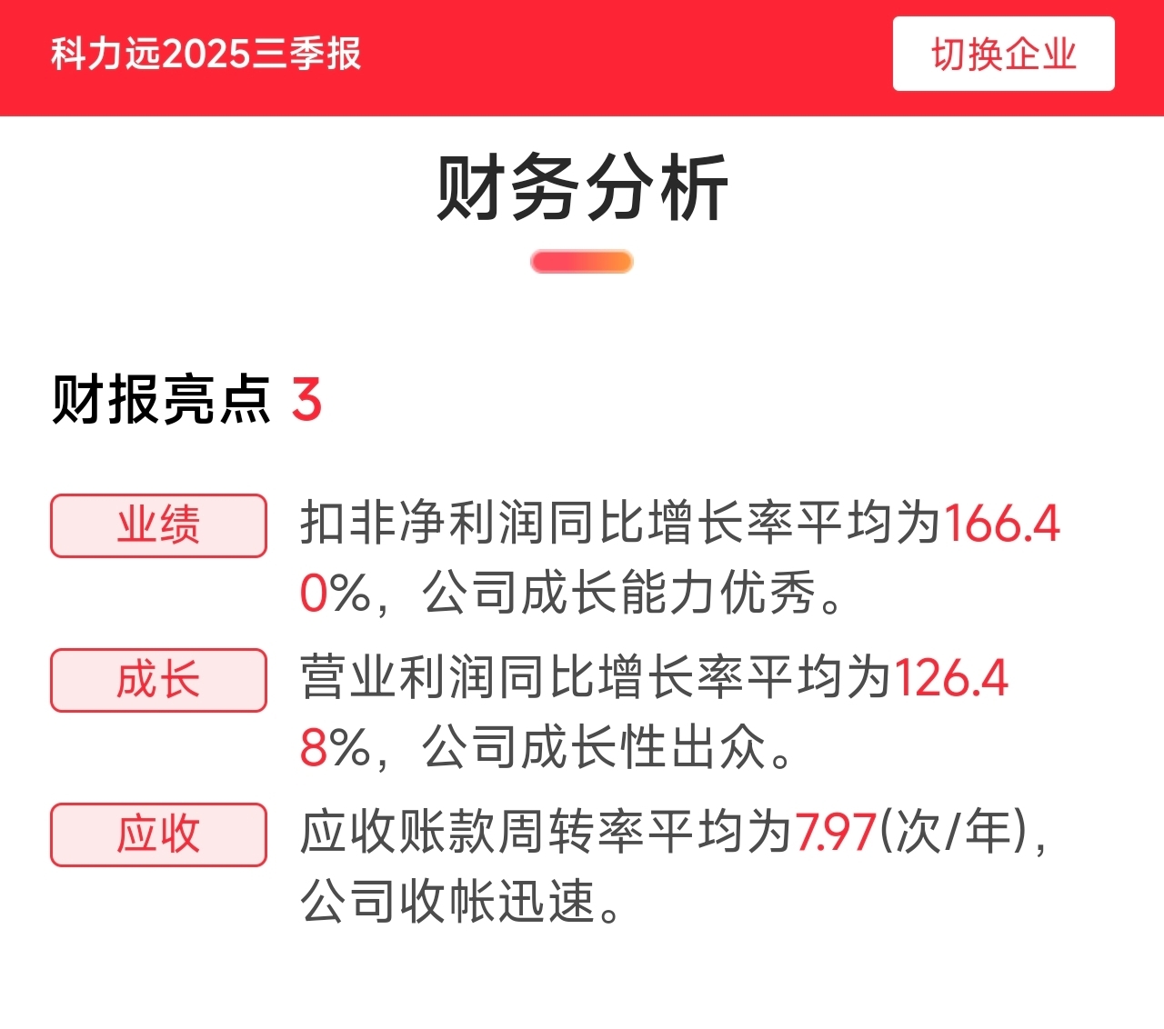 三季报财报亮点: