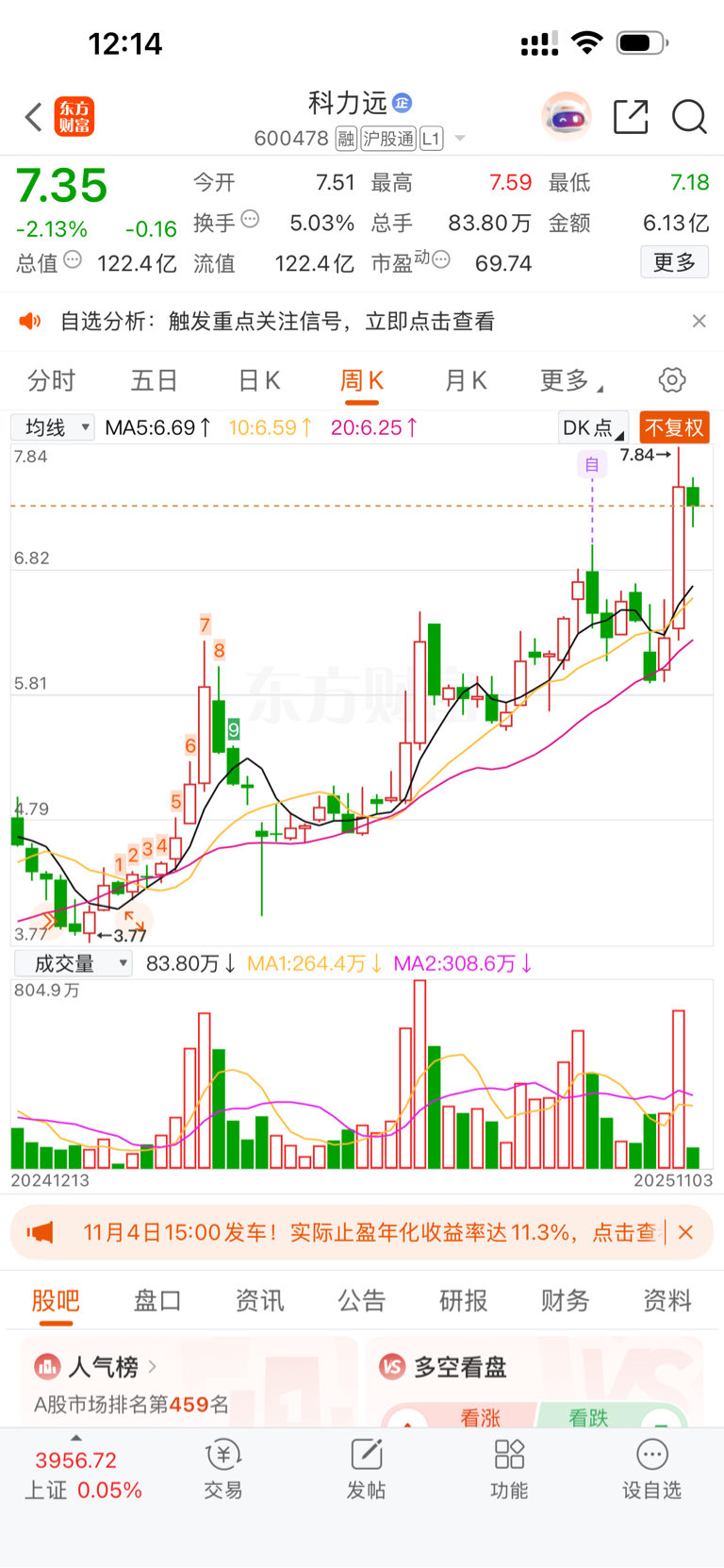 $科力远(SH600478)$ 从该股周线来看,调整还需要持续一段时间