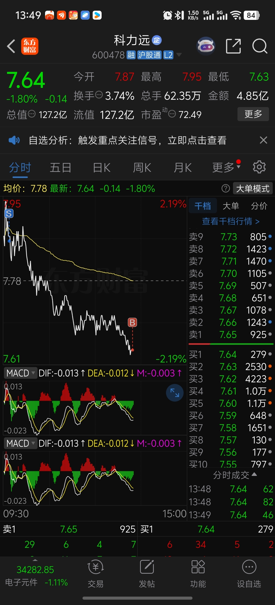 哈哈,今天又T了两毛二,主力你!我又狗了一天!