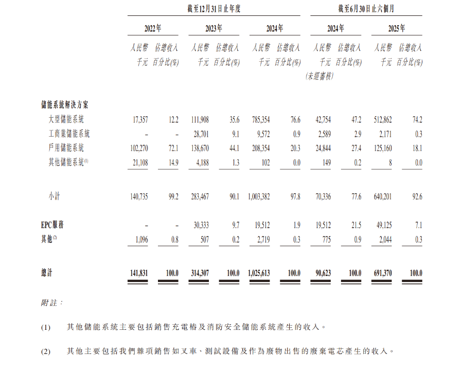 财务数据显示,2022-2025年上半年,公司营收从1.42亿元飙升至6.91亿元,三年半扩张近5倍,轻资产快速扩张优势凸显;但全行业低价竞争下盈利能力持续承压,毛利率从2022年25.1%微升至2023年26.7%后,2024年降至15.1%,2025年上半年进一步下探至12.5%,近乎腰斩。同期净利润分别为2427.7万元、2814.8万元、4911.9万元、557.5万元,2025年上半年净利增速仅13.5%,远低于营收增速。但从出货规模来看,其2022年的大储销量是58.0MWh,到2025年上半年已经达1146.0MWh。