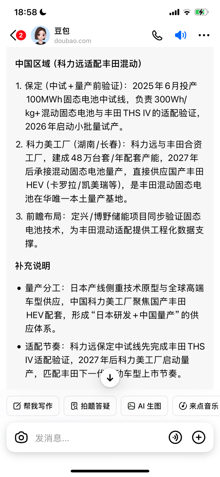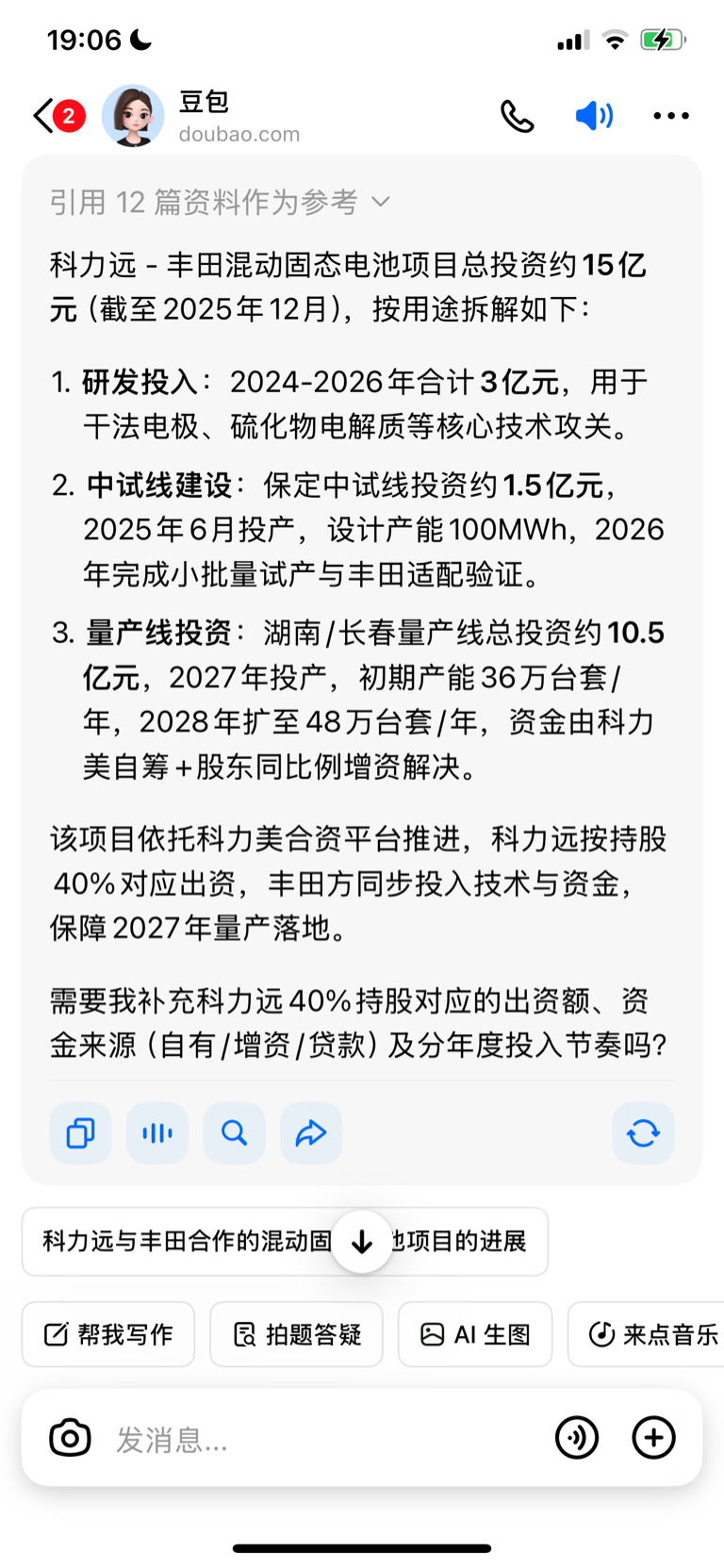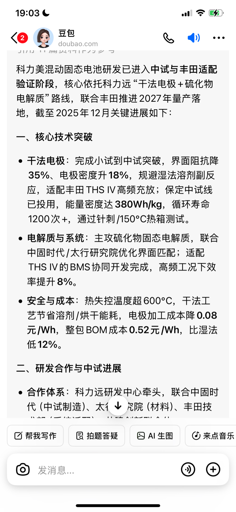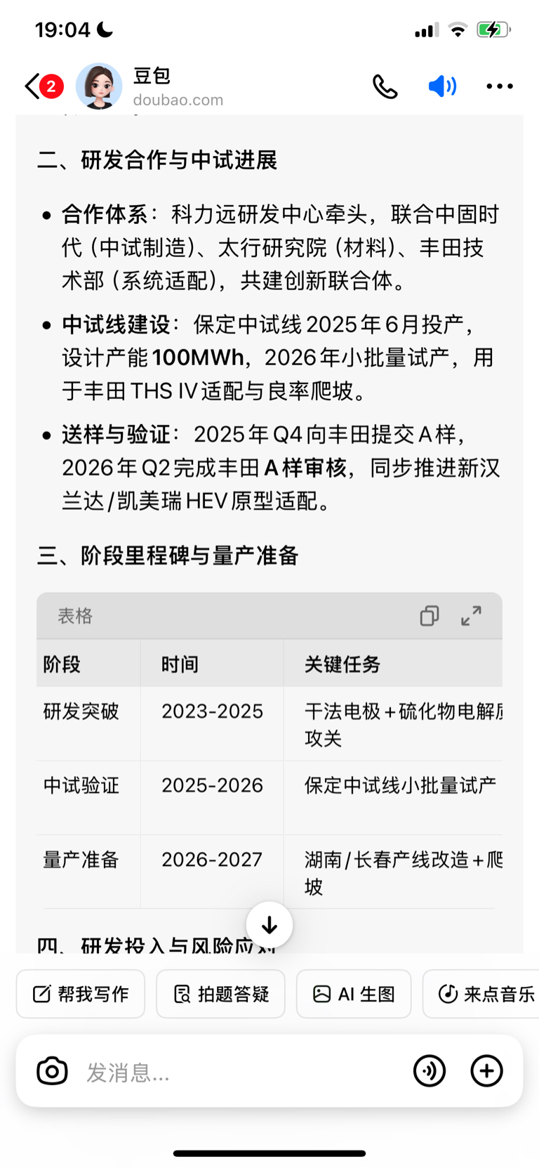 科力远混合动力固态电池开发规划(不保障信息真实)