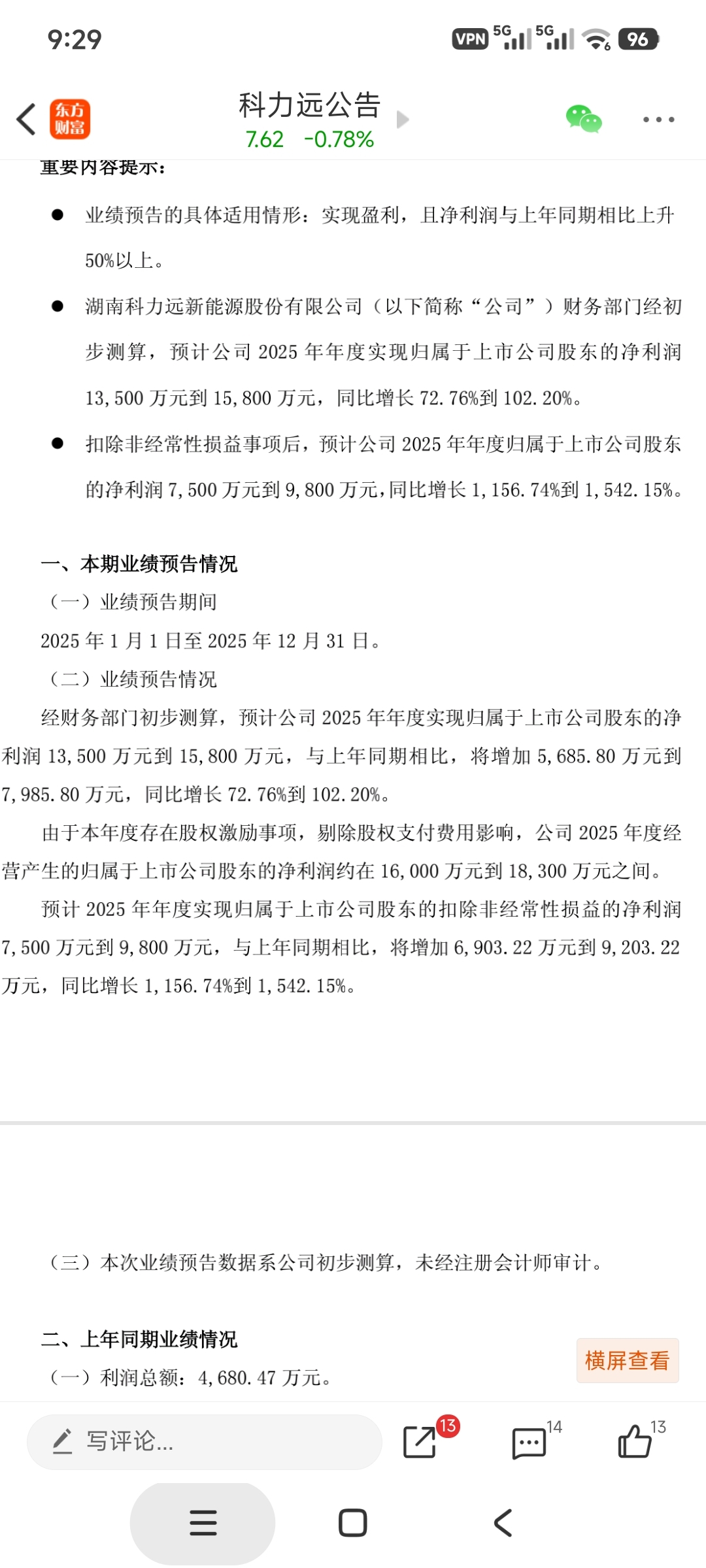 $科力远(SH600478)$ 喊四季度没利润的不看公告的吗,都说了没扣股权激励全面 1.6到1.8,就是四季度最少也有2500以上利润了,上限还可能5千万,也差不多了。