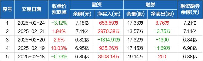 凌云股份:融资净买入653.59万元,融资余额7.18亿元(02-24)