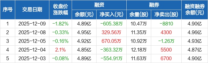 凌云股份:融资净偿还605.38万元,融资余额4.89亿元(12-09)