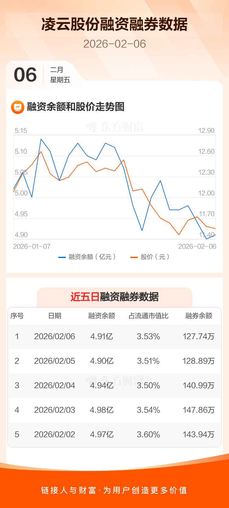 交易所最新数据显示,凌云股份于2026年2月6日获融资买入1044.63万元,融资偿还954.39万元,当日融资净买入90.24万元。目前,该股融资余额4.91亿,占流通市值比例为3.53%。