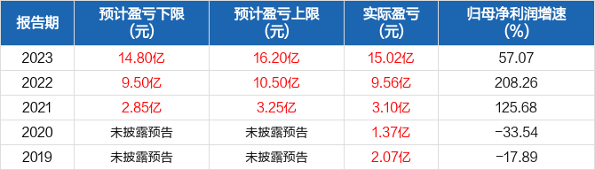 近5年归母净利润预测情况
