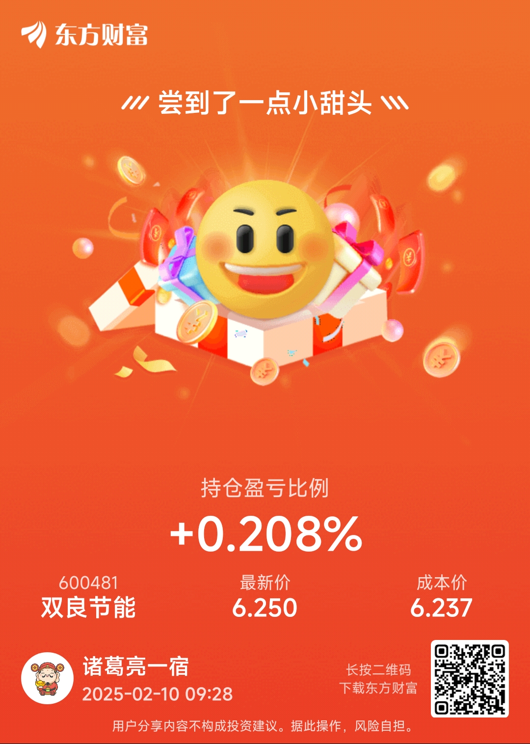 $双良节能(SH600481)$ 昨天说高开就拿,低开就卖,你给我来个平盘,让我如何是好