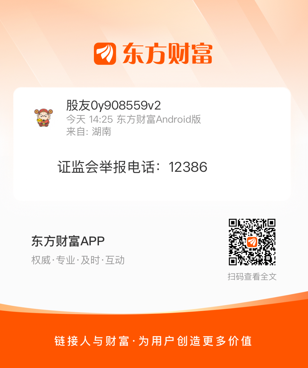 温馨提示: 1.根据《证券法》规定,禁止编造、传播虚假信息或者误导性信息,扰乱证券市场;2.用户在本社区发表的所有资料、言论等仅代表个人观点,与本网站立场无关,不对您构成任何投资建议。用户应基于自己的独立判断,自行决定证券投资并承担相应风险。《东方财富社区管理规定》