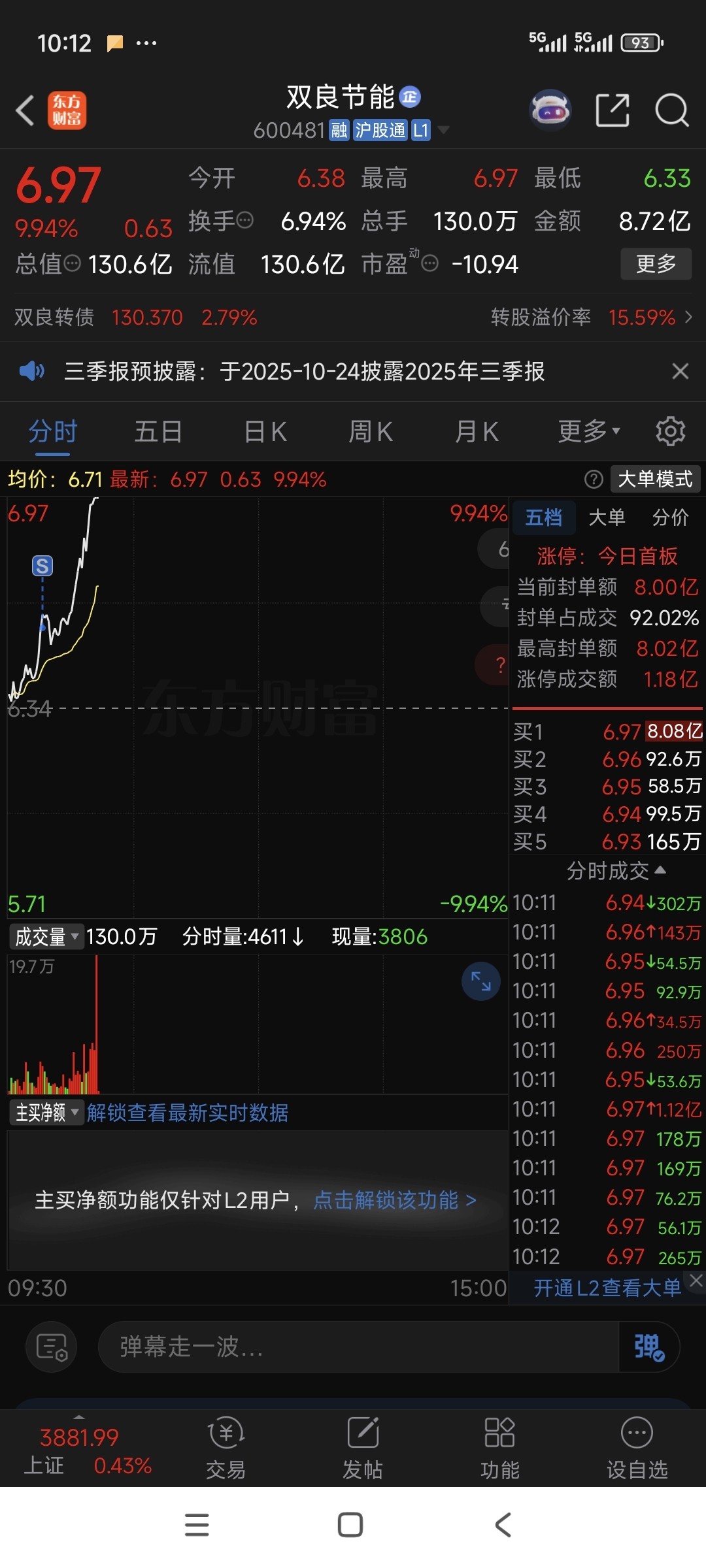 $双良节能(SH600481)$ 不想说话,好郁闷啊,早上多次挂单接回,都撤单了,还把底仓给卖了,真心难受至极!