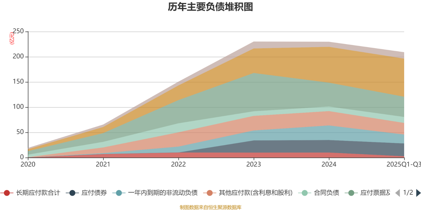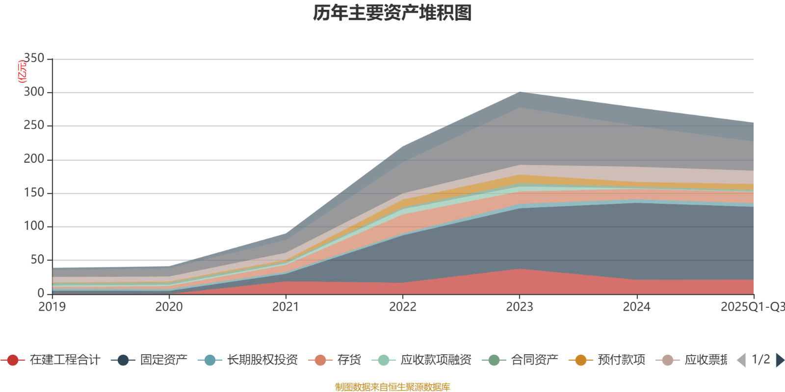 负债重大变化方面,截至2025年三季度末,公司短期借款较上年末增加6.38%,占公司总资产比重上升4.03个百分点;一年内到期的非流动负债较上年末减少38.74%,占公司总资产比重下降3.48个百分点;长期应付款合计较上年末减少75.31%,占公司总资产比重下降2.59个百分点;合同负债较上年末增加32.19%,占公司总资产比重上升1.43个百分点。