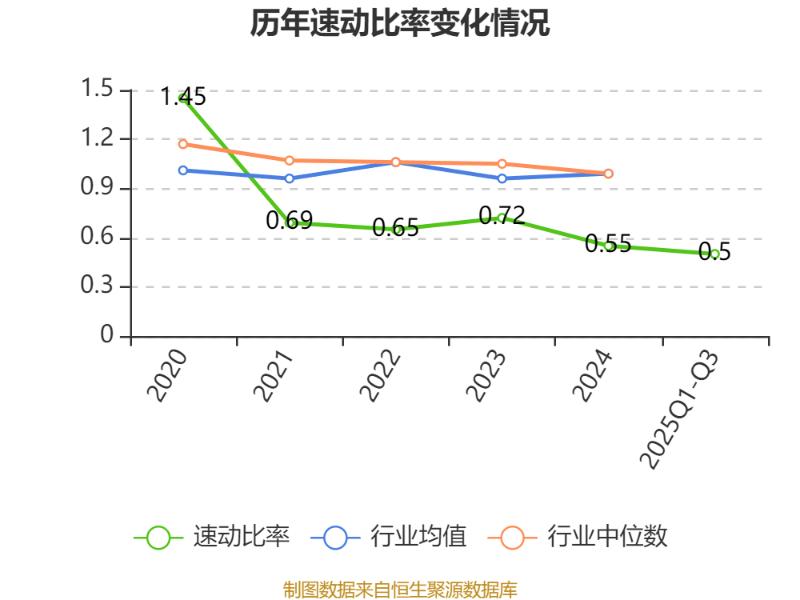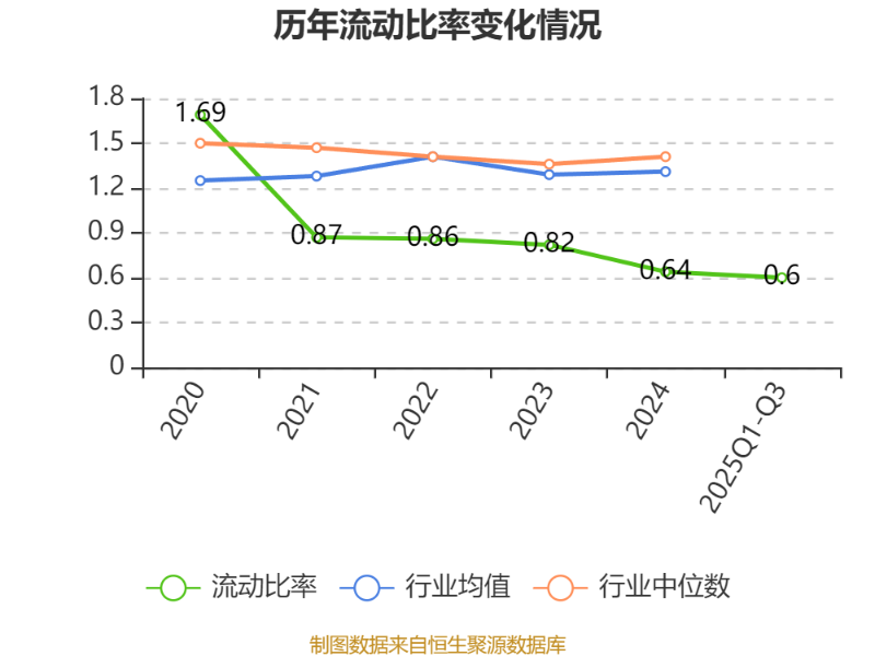 2025年前三季度,公司流动比率为0.6,速动比率为0.5。