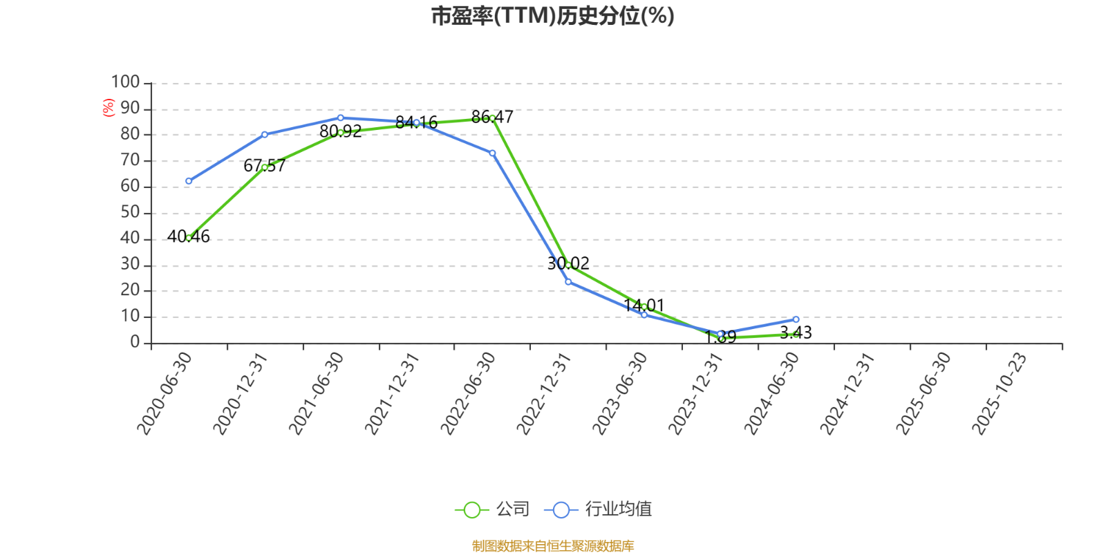 市盈率、市净率为负时,不显示当期分位数,会导致折线图中断。