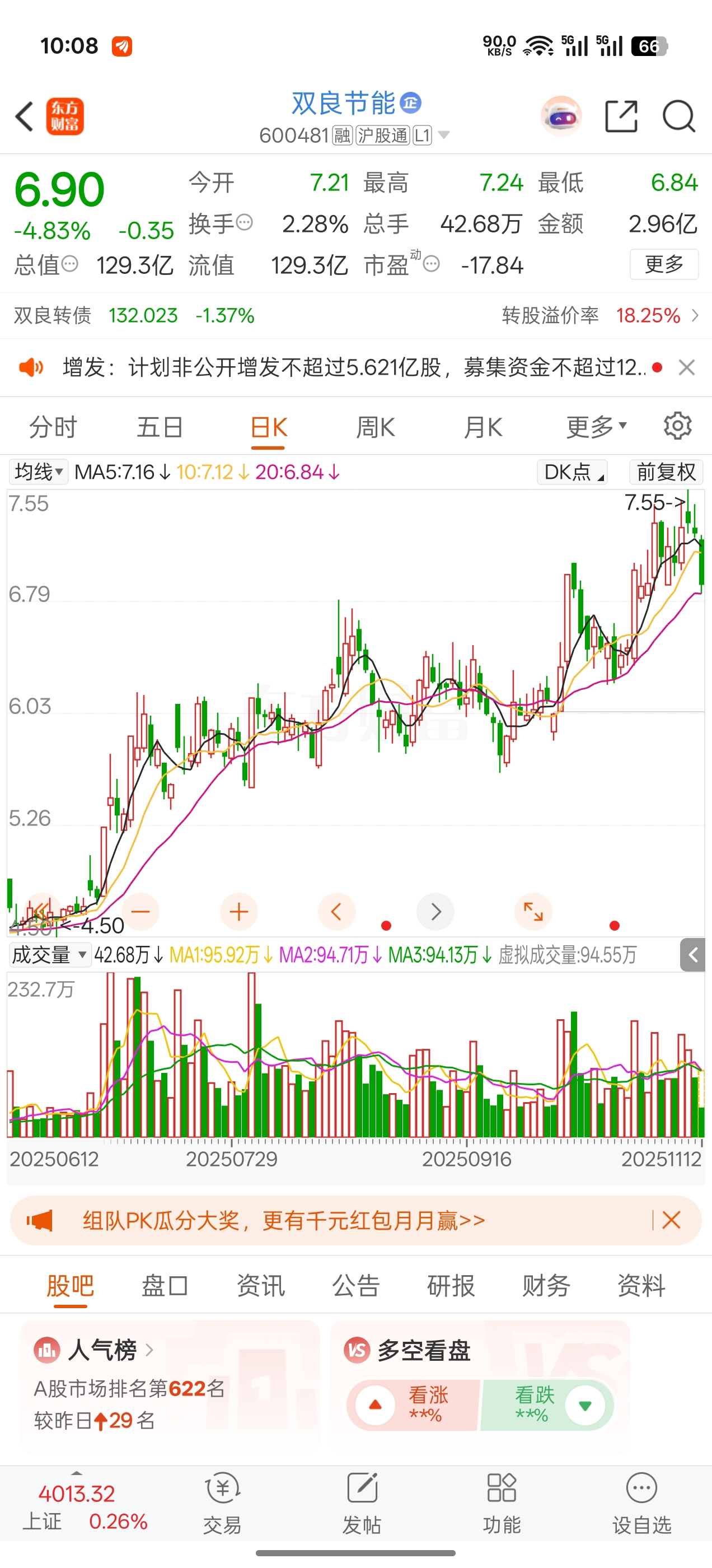 $双良节能(SH600481)$ 估计很多人都是看日线的能量进来的,今天的能量并不大,虽然跌的多了一点,但是姑且还可以看做是洗盘