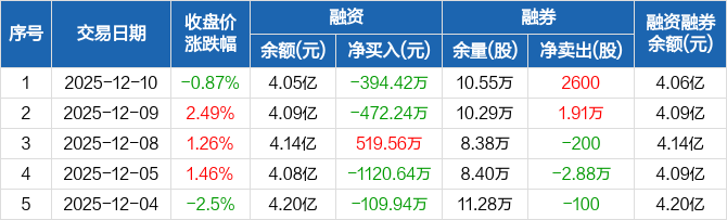 双良节能:融资净偿还394.42万元,融资余额4.05亿元(12-10)