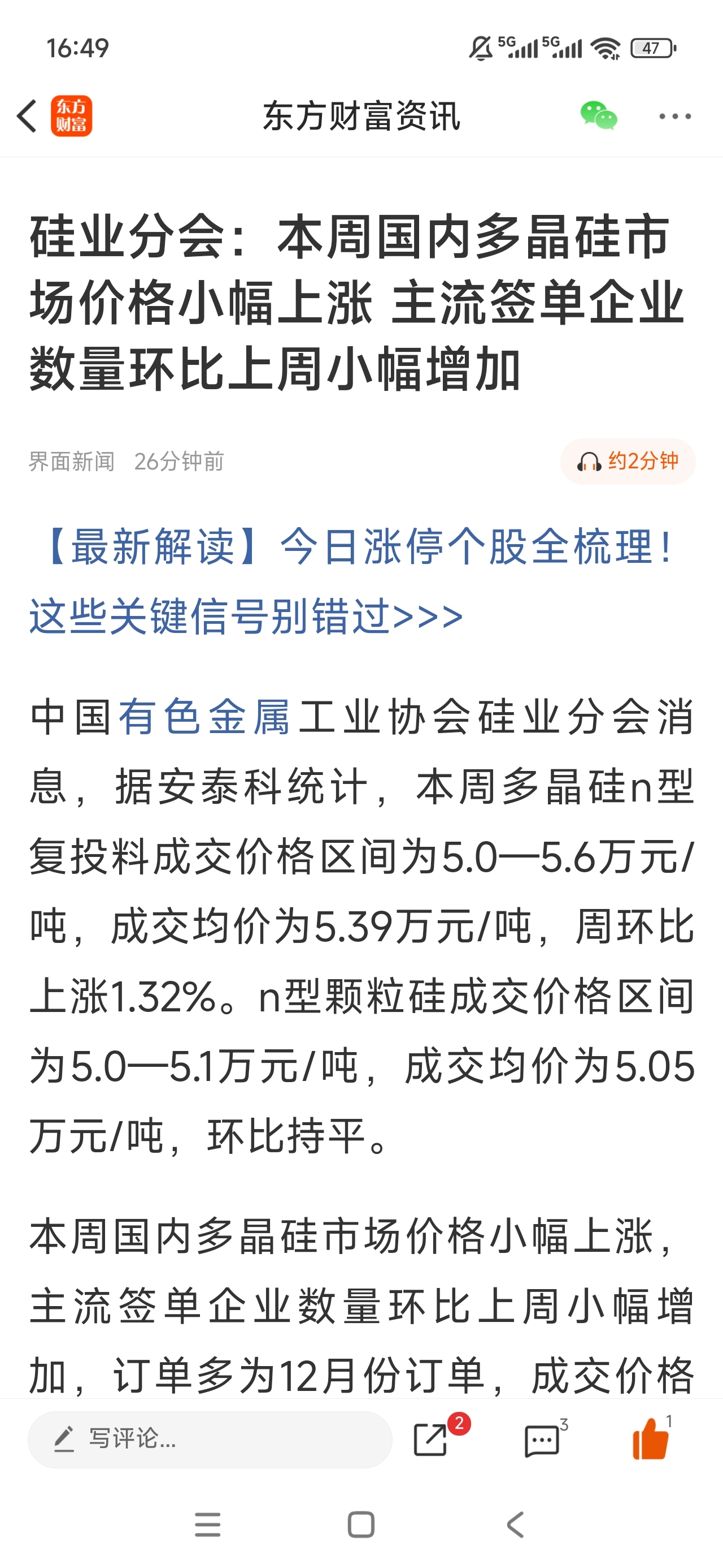 $双良节能(SH600481)$ 今天刚刚的新闻,硅材料涨价了