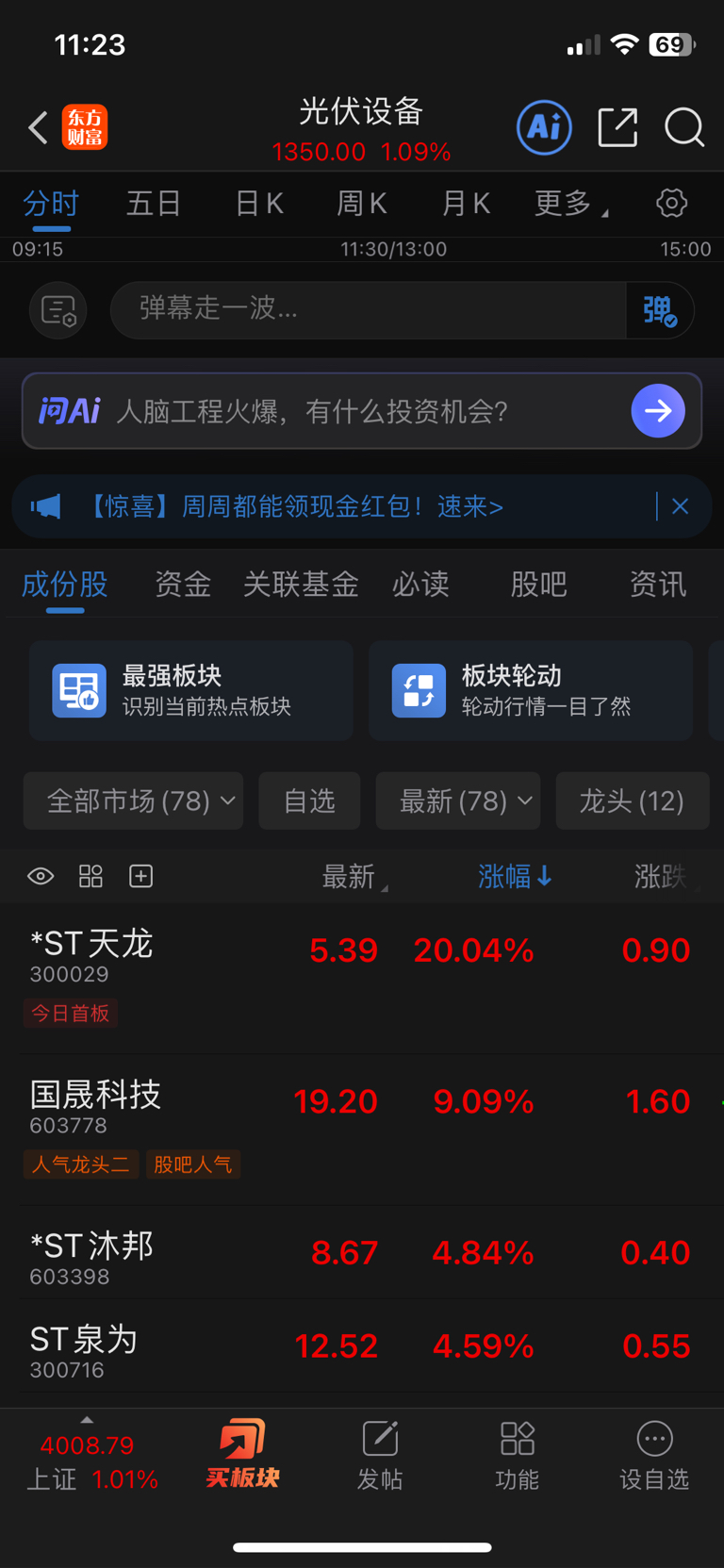 最菜的,st涨最多的板块