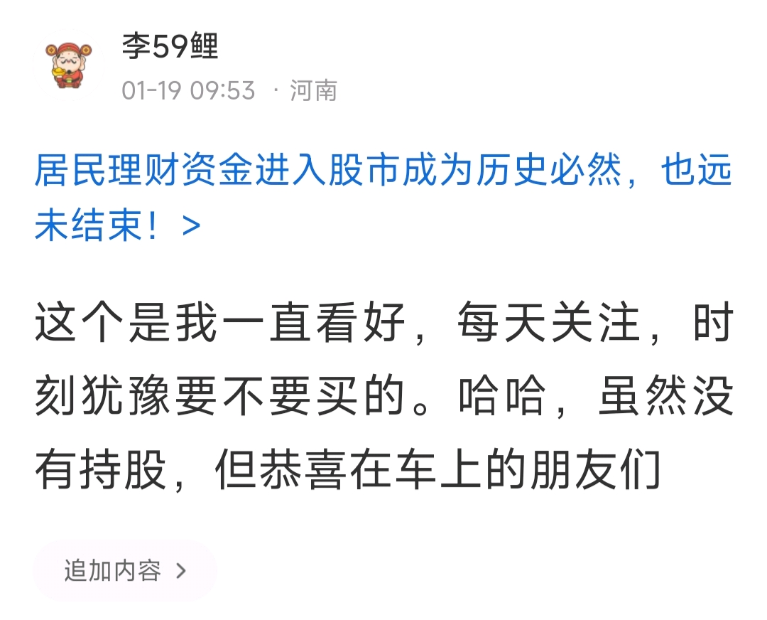 我给大家道歉。昨天我恭喜你们之后,今天也跟着上车了,吃大面。下次我不乱入了